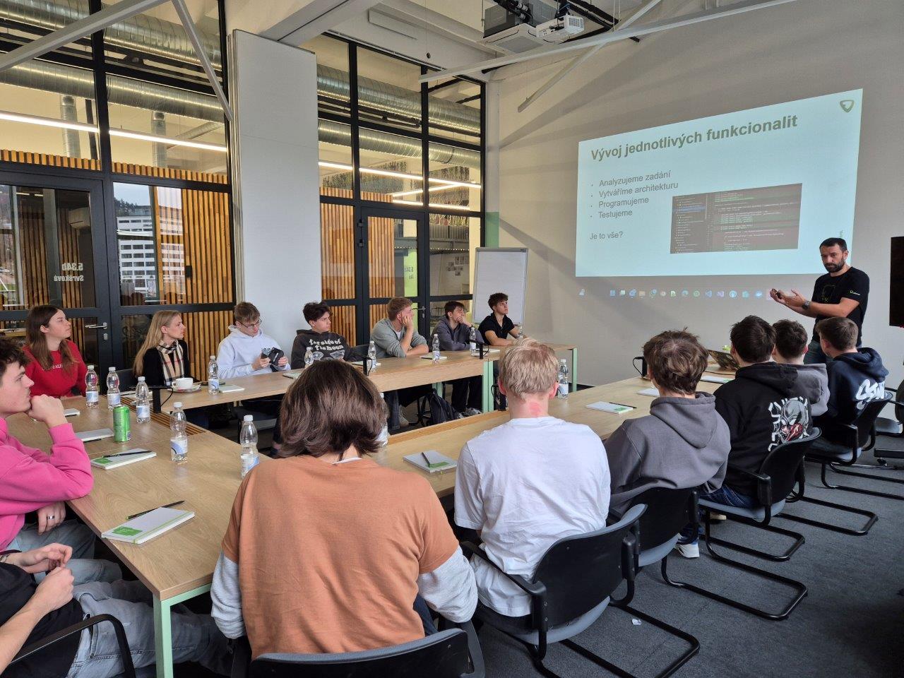 Pro studenty byl připraven interaktivní program. V úvodu se seznámili s činností firmy a hlavními projekty. Následovala krátká přednáška o jednotlivých profesích a procesech v IT praxi. Dále se rozdělili do týmů a prošli tři stanoviště: elektronový mikroskop, pokladní systémy a inteligentní domácnost. Studentům se exkurze velmi líbila, užili si nejen únikovku, ale i zajímavé prezentace.